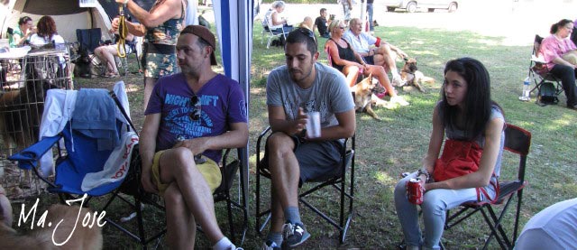 Joserra, Alex y Carolina en su primera visita a la Nat. d'Élevage, reponiendo fuerzas