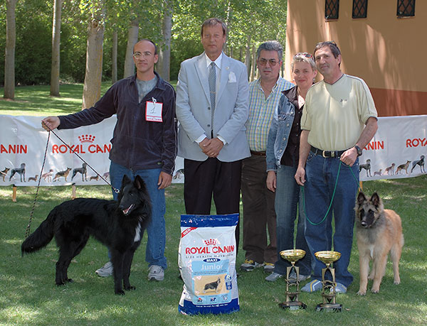 Los Mejores Cahorros: Anubis de Unic Santinhoa, presentado por D. Ricardo Hortigón y Fama del Esperedo, presentada por D. Luis Cámara, junto al Juez, D. Tomás Odriozola y Dña. Marina Fano.