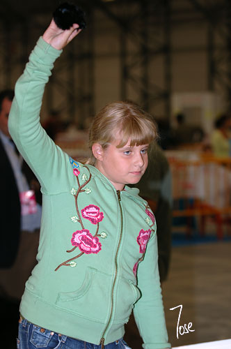 La Srta. Alexia llamando la atención de su perra Fiona de Ceibe Lar.