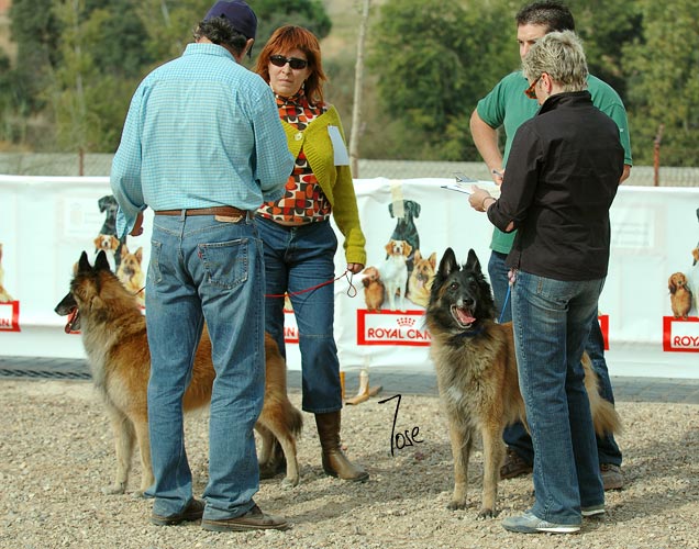Los comentarios del Juez a los participantes en la Clase Campeones Hembras Tervueren, después de los juicios