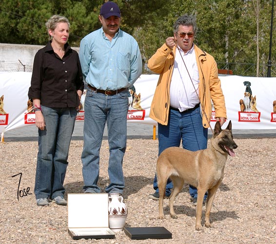 SS CHE. CH. POR. TESSA DES ILES DU SUD - Mejor Malinois y Mejor Sujeto Absoluto B.I.S., presentada por D. Tomás Odriozola, junto a Dña. Marina Fano, Secretaria General del Club y el Juez, D. Miguel A. Casado