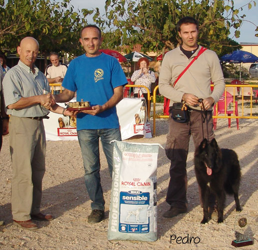 El Juez y Tesorero del Club, D. Miguel Alfageme, haciendo entrega de un detalle a D. Pedro Serra, en presencia de Bohême de la Valle des Sortileges (Mejor Sujeto Absoluto BIS), presentada por su copropietario.
