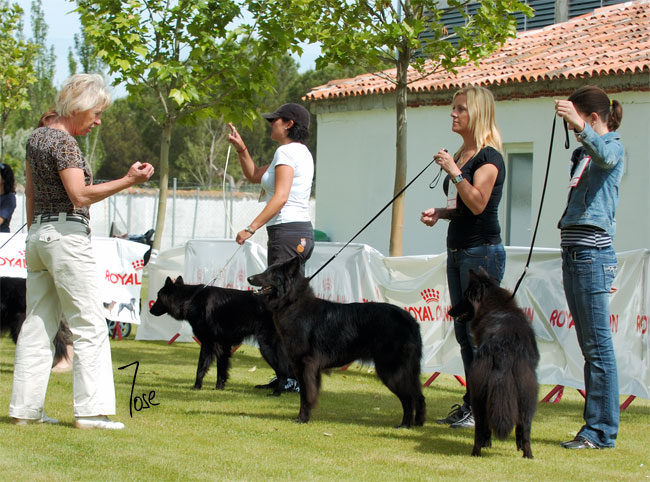 NATILLA DE CHIMINDOA (en el centro, observada por la Juez), M.B. en Clase Jóvenes Hembras Groenendael.