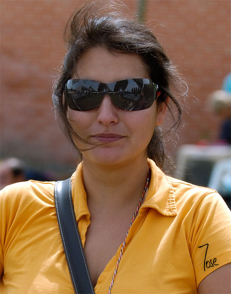 Dña. Cristina Andreu, muy feliz al proclamarse su perro Besos de d'Artamas Mejor Cachorro Absoluto.
