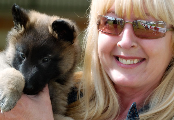 Una de las mascotas de jornada . . . , mientras en los "ojos" de Mari Jose se refleja como compiten sus hermanastros en el Ring de los machos Tervueren.