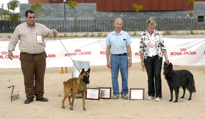 FANG DU HAMEAU ST. BLAISE, con su propietario D. Rafael Valle y BRUSCHETTA DELL´ALTA VIA, con Dña. Marina Fano, junto al Juez en la elección del Mejor Joven Absoluto