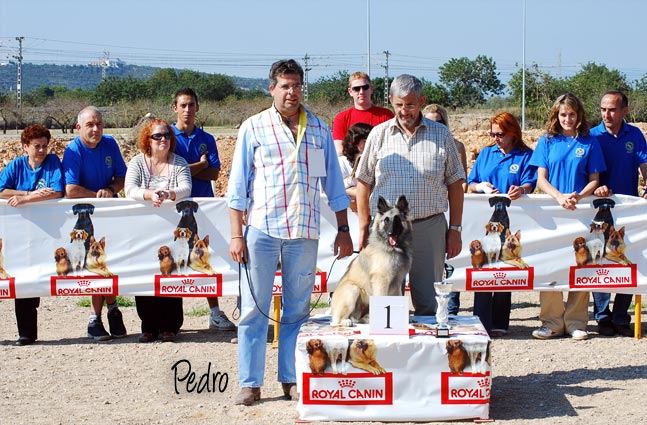 Diego Duarte con su hembra Tervueren HEIDI D´AQUIVELT, que fue Mejor Cachorro Absoluto y el Sr. Juez