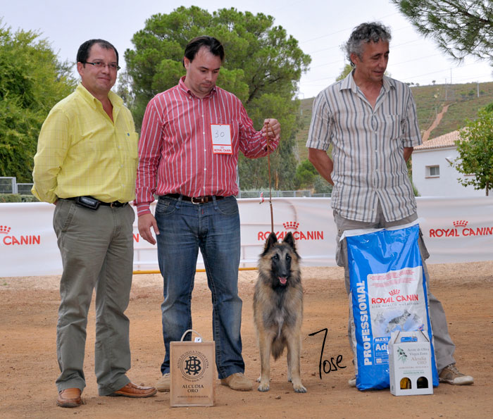 Henoa de Ceibe Lar, Mejor Cachorro, presentada por David Robledo, junto al Concejal del Excmo. Ayto. de Puertollano y el Juez