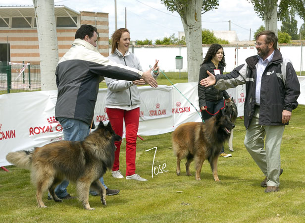 David Robledo (repetimos, Handler "profesional" de reconocido prestigio), recibe la felitación del Juez por el triunfo de Fenix de Ceibe Lar, ganador de la Clase Abierta Machos Tervueren