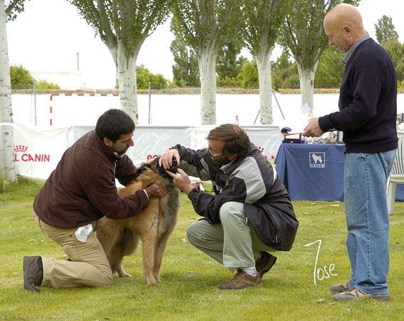 El Juez Benoît Thévenon comprobando la dentadura de uno de los participantes, ante la atenta mirada del Comisario de Ring Miguel Alfageme