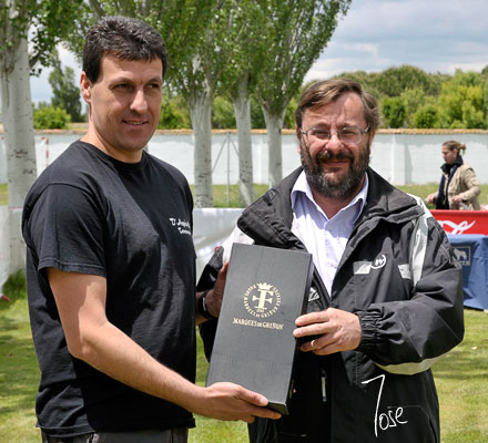 Pedro Serrano hace entrega de un obsequio conmemorativo al Juez Benoît Thévenon