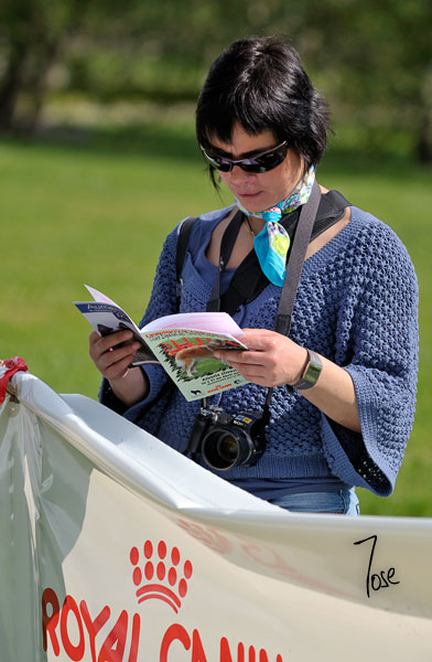 La Veterinaria del certamen comprobando datos del catálogo