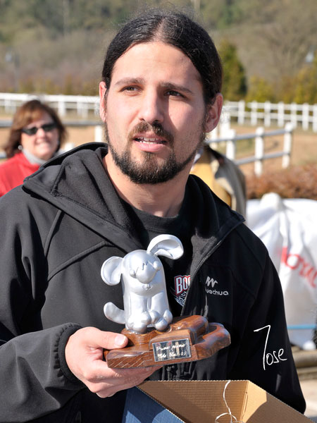 El autor con el original Trofeo que se entregó al ganador del Concurso Canino
