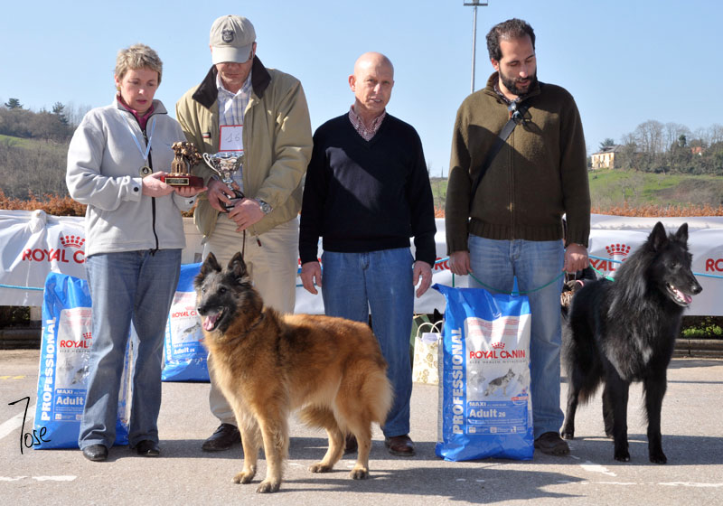 Elección de Mejor Sujeto: La Presidenta Marina Fano y el Juez Miguel Alfageme acompañan a Jesús Esteve con Vega de Seronda, Mejor Tervueren y Carlos Gil con Besos de d'Artamas, Mejor Groenendael