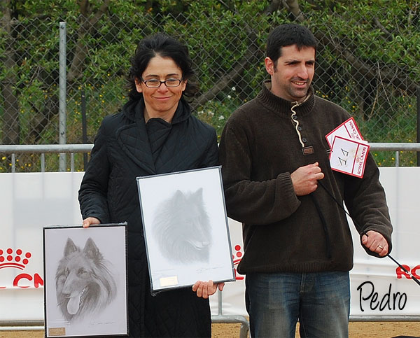 Laura muestra los fantásticos dibujos realizados por Daniel Carrasco, que representan a célebres perros de nuestra raza y nuestro Club y que fueron entregados a los Mejores de Raza, ¡Qué "pasote" ....¡. Gracias Dani, menudo detallazo