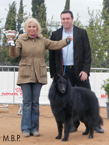 La organización para la entrega de Trofeos fue perfecta. En la foto Mercedes Berenguer y Eudal Salvat con FREDY DE BELLIAMICI, Mejor Macho Groenendael