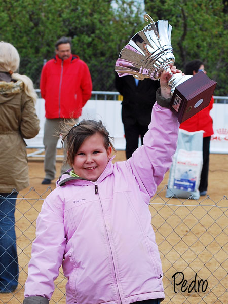 Sara Serano levanta orgullosa el Trofeo al BIS conseguido por su compañera de juegos HEIDI D'AQUIVELT