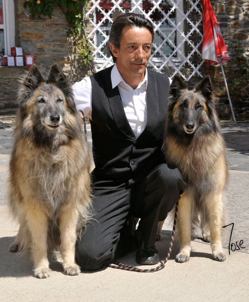 Jesús, empleado del Hotel que nos atendió perfectamente y al que le encantan los perros, con dos perras de lujo: Daniela y su nieta Dalía