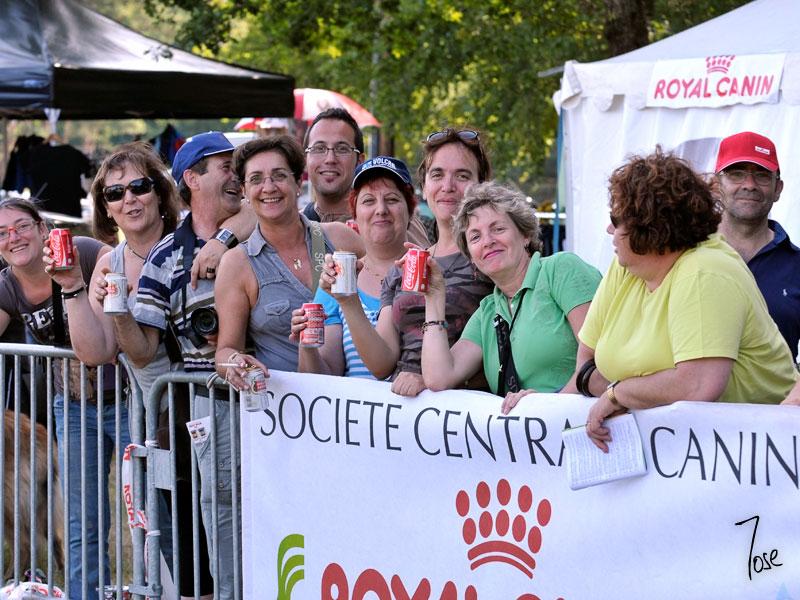 Grupo de españoles creando ambiente en el ring de honor