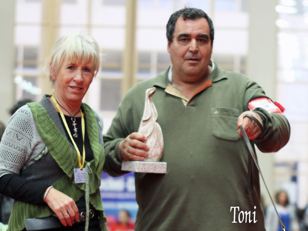 Willemine van Deijl entregando a Rafael Valle el Trofeo al Mejor de Raza Malinois, Iris del Valle Dorado