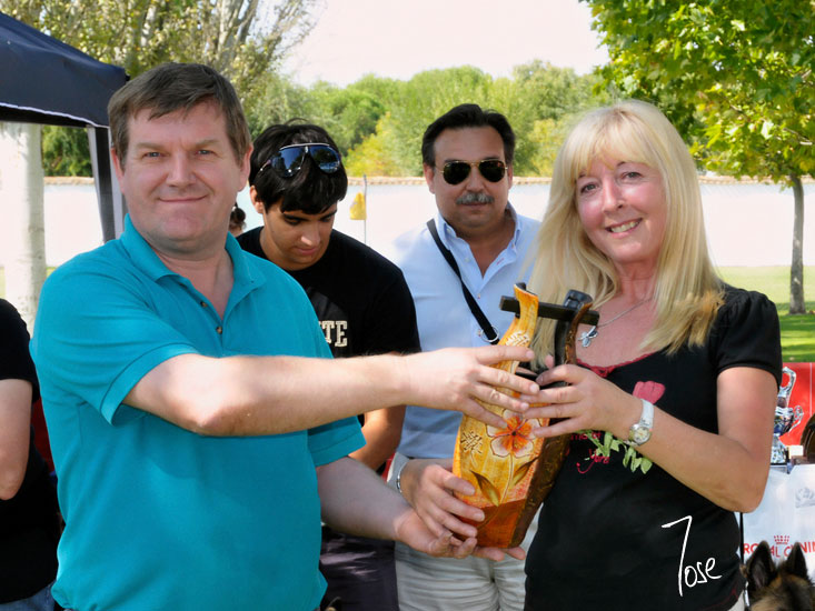 Jesús Bazán, Alcalde de Traspinedo, haciendo entrega del Trofeo al Mejor Grupo Reproductor a Josete Quintans, criadora y propietaria de Dalía de Pedra Lume