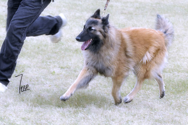 Hannah de Ceibe lar, Mejor Tervueren, trotando en el ring de honor con unas excelentes marchas bien cubrientes durante la elección del BIS