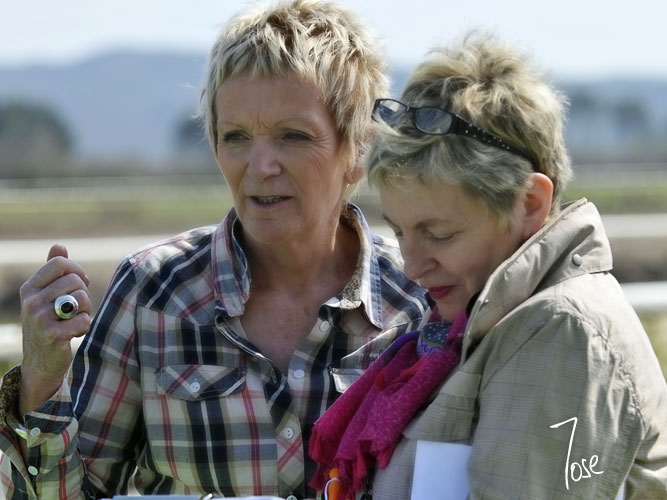Marie F. Berton Sarlat y Marina Fano. Marie juzgó los Machos, Clase Ch. de Club, Lotes de Cría y las finales