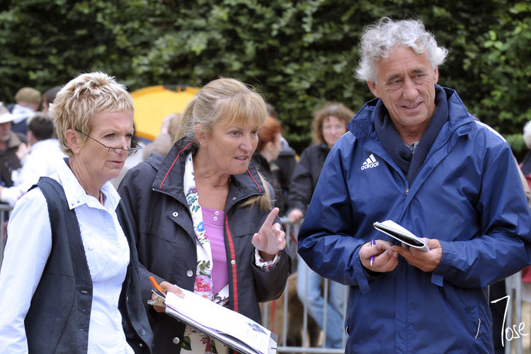 Mme. Varlet, en el centro, dando explicaciones a Mme. Berton-Sarlat y M. Griol, durante la recomendación de los Machos Groenendael, de cuyo juicio se encargó la propia Mme. Varlet