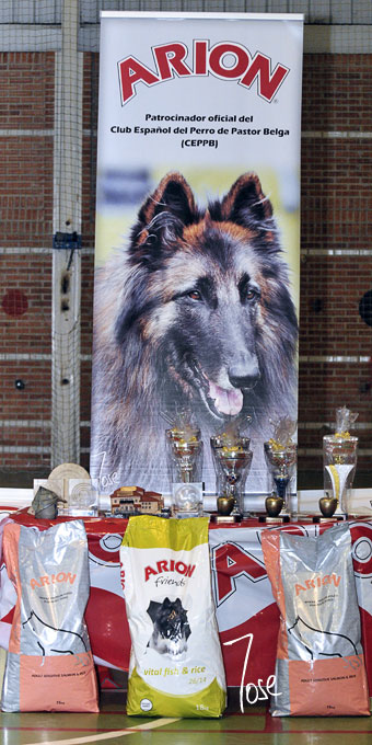 Mesa de Trofeos con el cartel elaborado por nuestro patrocinador ARION