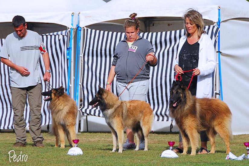 Los dos primeros de la Clase Intermedia, Machos y Hembras Tervueren y el ganador de la Clase Abierta Machos y CAC