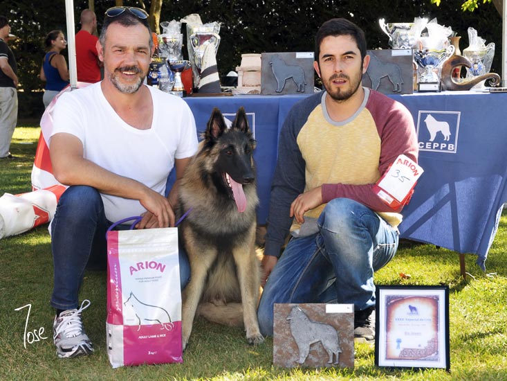 Joserra y Alex con Numa-Pompilio de Fonteserra y los trofeos conseguidos
