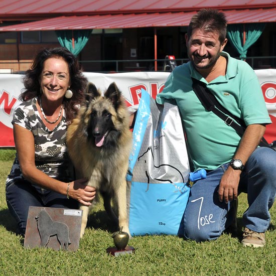 Susana y Santi con Odix de Pedra-Lume y los trofeos conseguidos