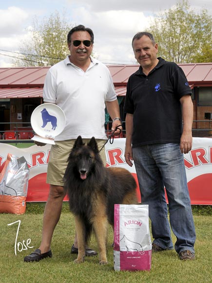Entrega de los trofeos de Ch de Club 2014: en la foto el macho Tervueren Kazán de Pedra-Lume con su propietario y Jorge Saucedo, Presidente del CEPPB