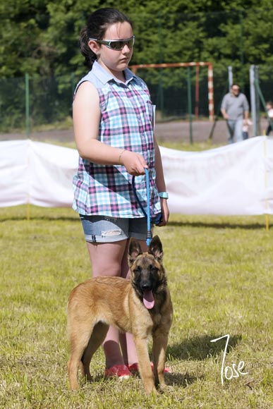 La debutante hembra Malinois TINA DE ANIEVAS, bien presentada por su joven propietaria