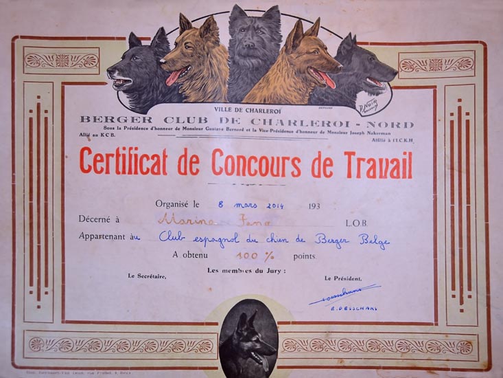 Certificado original del Club belga del aņo 1930 entregado por Eric a Marina Fano