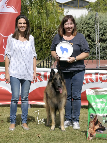 Lark d’Aquivelt, Campeón del Club 2016. En la foto con María, Concejal del Ayto. de Nava y Alicia, que muestra el trofeo
