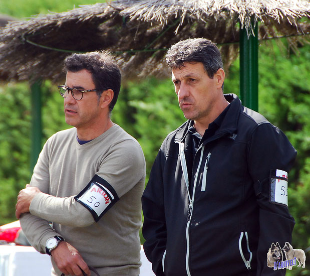 Angel y Pedro preparados para entrar al ring de la Clase Campeones Machos Tervueren