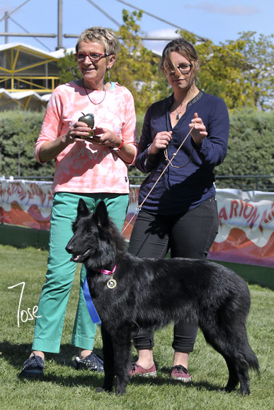 NEVERENDING STORY OF LOVE DE KERTANHYS, Mejor Cachorro Groenendael con su propietaria y la Juez